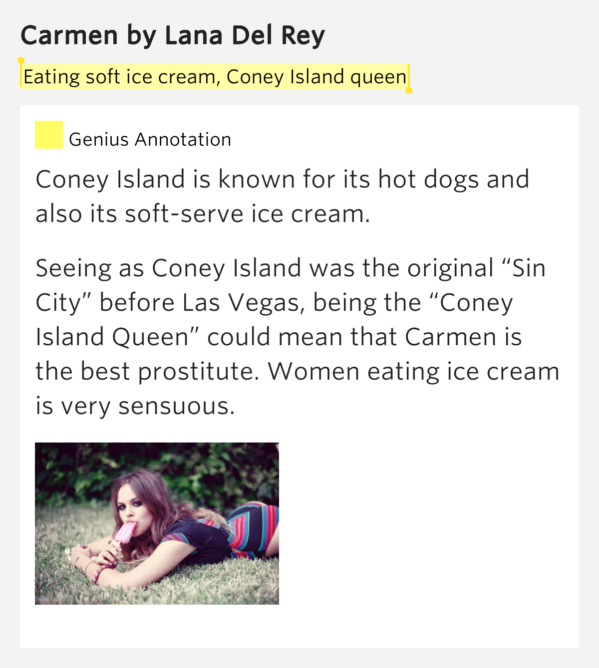 12+ Lana Del Rey Soft Ice Cream Pictures. Lana del rey's luscious love song with imagery of soft ice cream and passionate love depicts the singer and her lover in 1940's italy. All the lights in miami begin to gleam ruby, blue and green, neon too catch me if you can working on my tan salvatore dying by the hand of a foreign man happily calling out my name in the summer rain ciao amore salvatore can wait now it's time to eat soft ice cream.