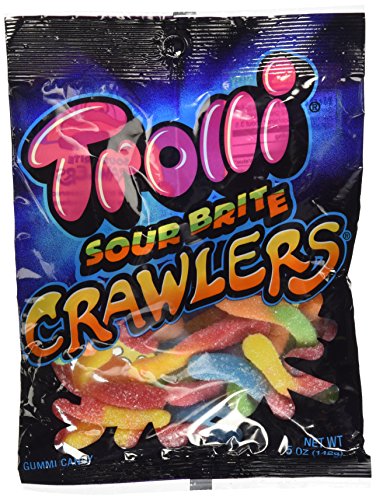 Trolli's newest gummy worms have a crunchy shell. These are made by the wholesomeâ„¢! There are 120 calories in 5 pieces (38 g) of trolli gummy worms. Trolli sour brite dip n' crawlers gummy worms, 1.55 ounce, pack of 12.