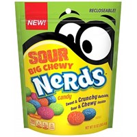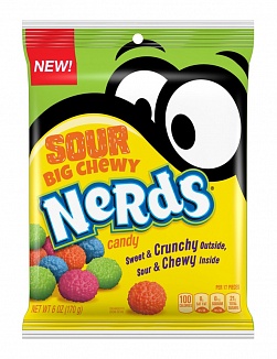 The big chewy nerds portfolio is expanding with sour big chewy nerds, which have a sour chewy center and a sweet and crunchy nerds candy shell. Brainiac blue raspberry, wiki watermelon, streaming strawberry lemonade, blood orange byte. The big chewy nerds portfolio is expanding with sour big chewy nerds, which have a sour chewy center and a sweet and crunchy nerds candy shell. Featuring a sour chewy center covered in a sweet, crunchy nerds candy shell, this product contains a variety of sour flavors such as brainiac blue raspberry, streaming strawberry lemonade.