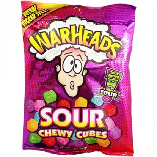 Warheads chewy cubes, 5 oz, (pack of 3). 50 vingummier, som alle er. Warheads sour chewy cubes come in the following six fruity flavours