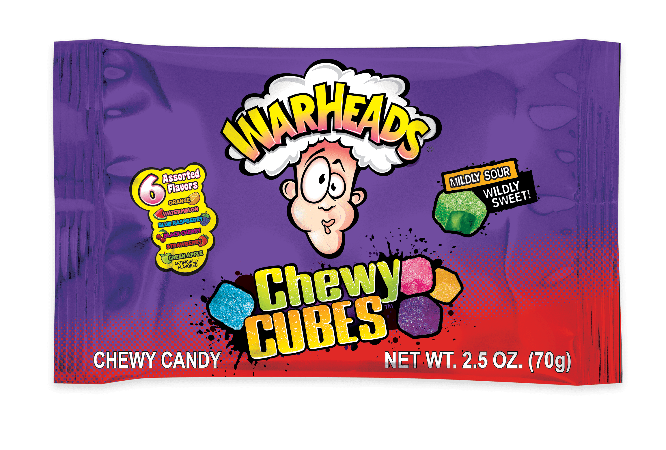 Warheads sour chewy cubes come in the following six fruity flavours