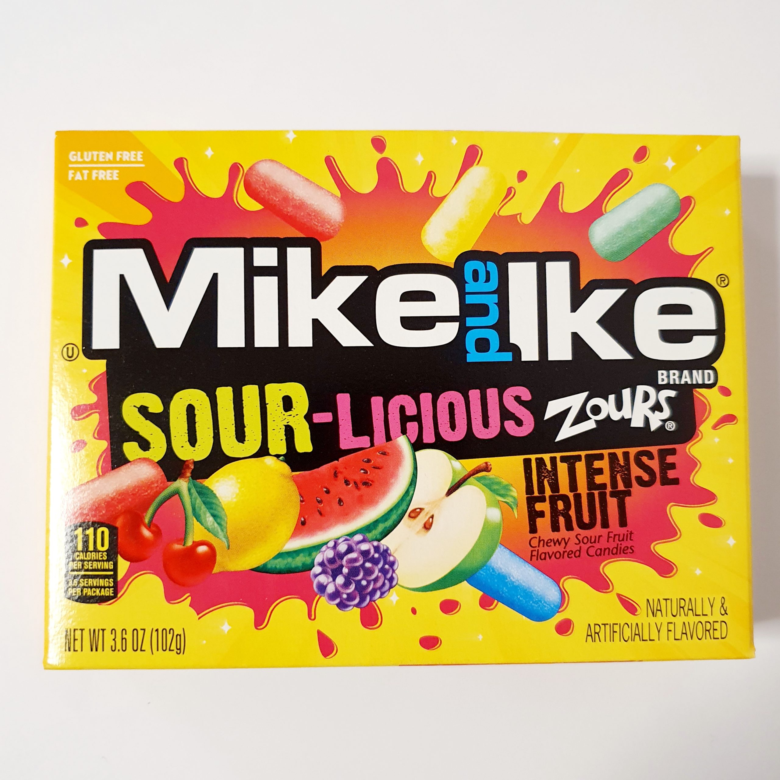 Cukier, syrop kukurydziany, skrobia modyfikowana, owocowy sok z koncentratu (gruszkowy. Mike and ike sourlicious fruit punch theatre box (102g). Mike & ike have triumphed again with their sour mega mix theatre box.